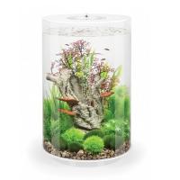 Аквариум из высокопрочного прозрачного акрила, в форме цилиндра с обзором 360°, с белой подсветкой. Полностью готов к использованию. Крышка белая. Все, что необходимо для установки аквариума, входит в комплект:
