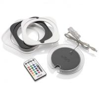 Цветная светодиодная подсветка с пультом дистанционного управления и диммером. Четыре предварительно запрограммированных временных цикла, имитирующих дневные и ночные условия освещения. Яркость подсветки может быть снижена на 20%. Подходит для аквариумов Biorb:
