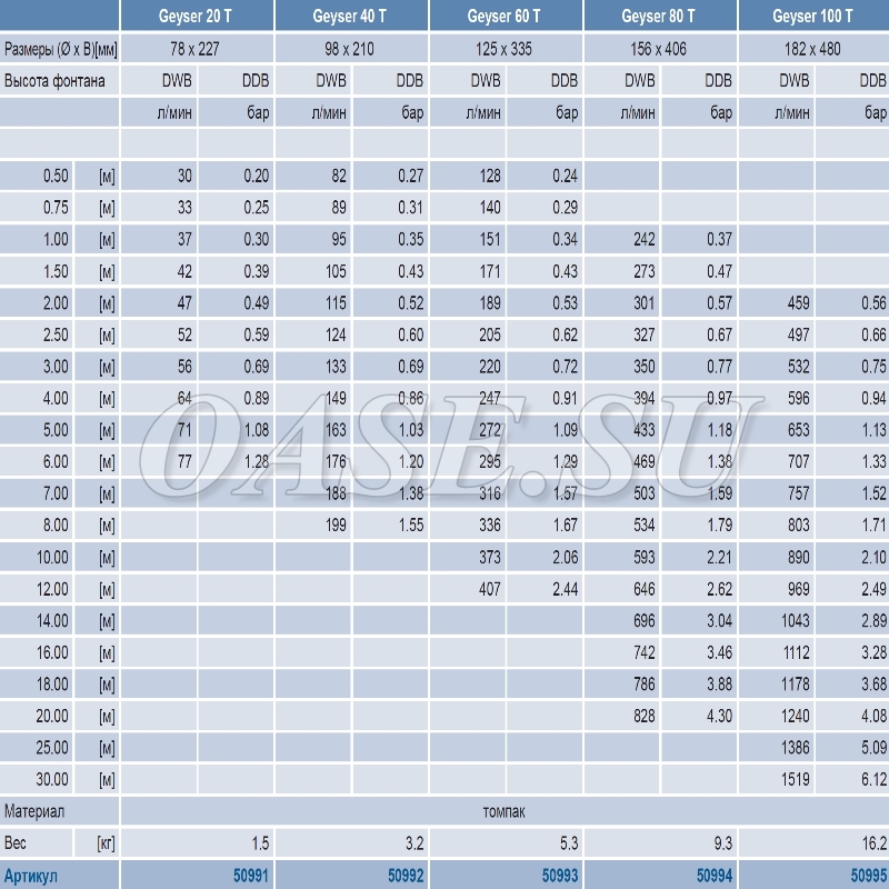 • Насадка зависит от уровня воды