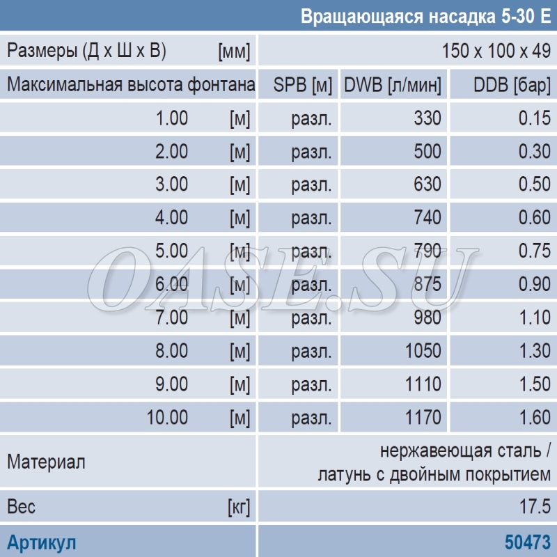 • Максимальная высота фонтана - 10м