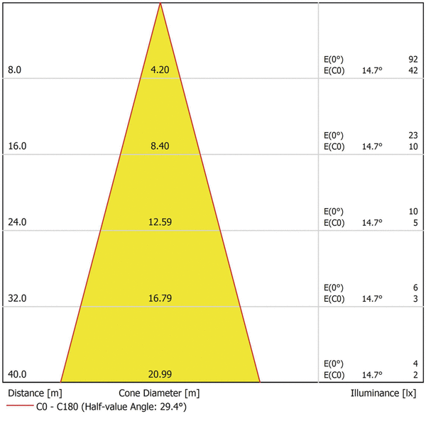 • 1715 люмен с углом рассеивания 31°, макс. 56 Ватт