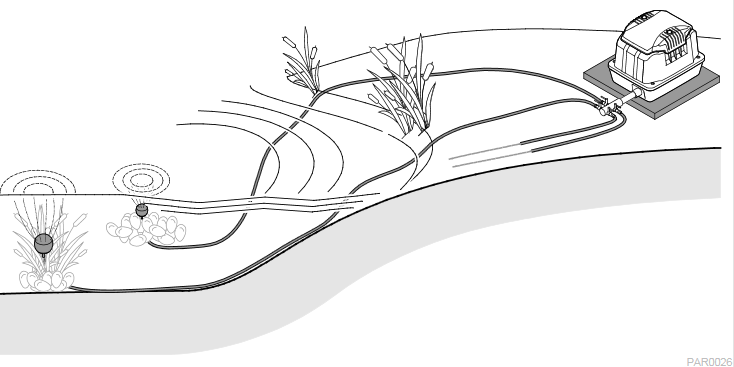 Насос для насыщения воды кислородом, каждый аэратор оснащен аэрационными камнями , количество камней зависит от модели от 2 до 4 штук., а так же воздушными шлангами и обратным клапаном. Аэраторы необходимы для пруда, их используют для обогащения воды кислородом в помощь системе фильтрации и для сохранения здоровья рыб, а так же в зимнее время для поддержании полыньи. При использовании аэратора в сочетании с фильтром, работоспособность любого фильтра повышается в среднем на 10 процентов, а в зимнее время они позволяют выводить вредные газы, которые образуются под коркой льда, сохраняя при этом баланс, созданный в водоеме.