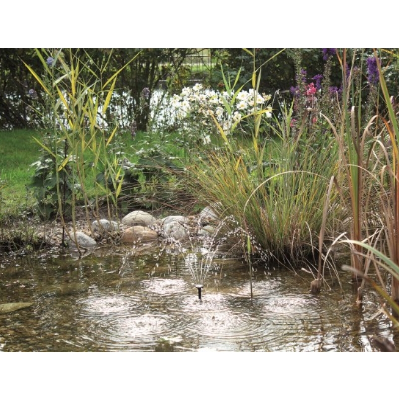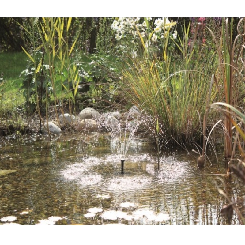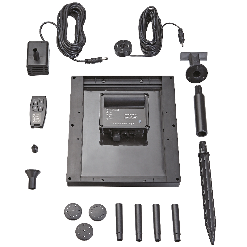 Комплект фонтана с подсветкой на солнечной энергии идеально подходит там где нет возможности использовать электричество или нет желание подводить элетричество к водоему. В комплект поставки входит 4 разные насадки, пульт д/у, а так же солнечная панель и подсветка для вечернего наслаждения фонтаном.