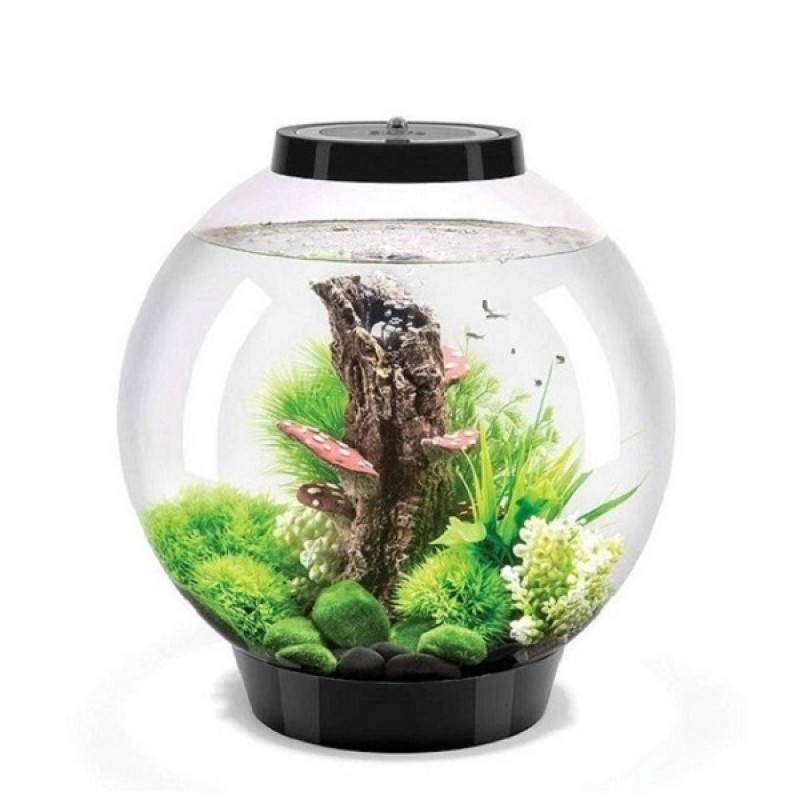 Круглый аквариум из высокопрочного прозрачного акрила с белой подсветкой. Полностью готов к использованию. Крышка черная. Все, что необходимо для установки аквариума, входит в комплект: