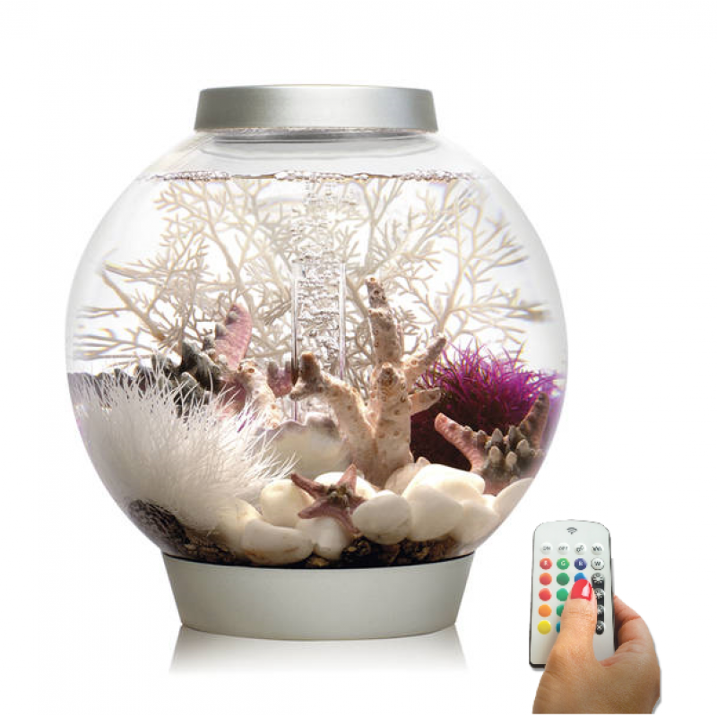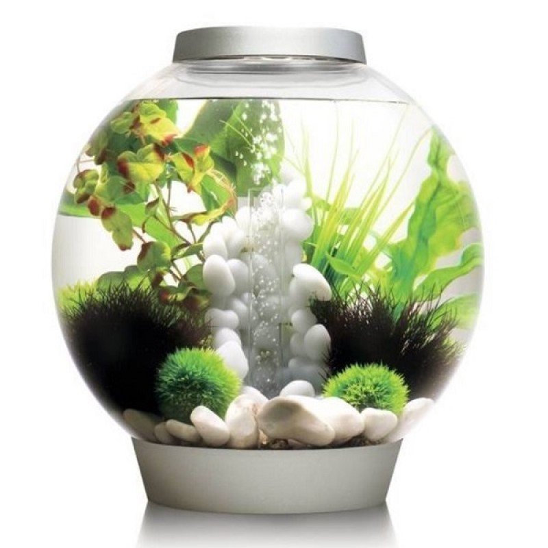 Круглый аквариум из высокопрочного прозрачного акрила с белой подсветкой. Полностью готов к использованию. Крышка серебристая. Все, что необходимо для установки аквариума, входит в комплект: