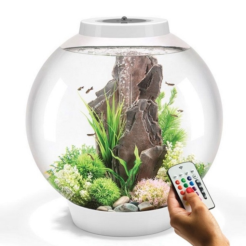 Круглый аквариум из высокопрочного прозрачного акрила с цветной подсветкой и пультом. Полностью готов к использованию. Крышка белая.Крышка серебристая. Все, что необходимо для установки аквариума, входит в комплект: