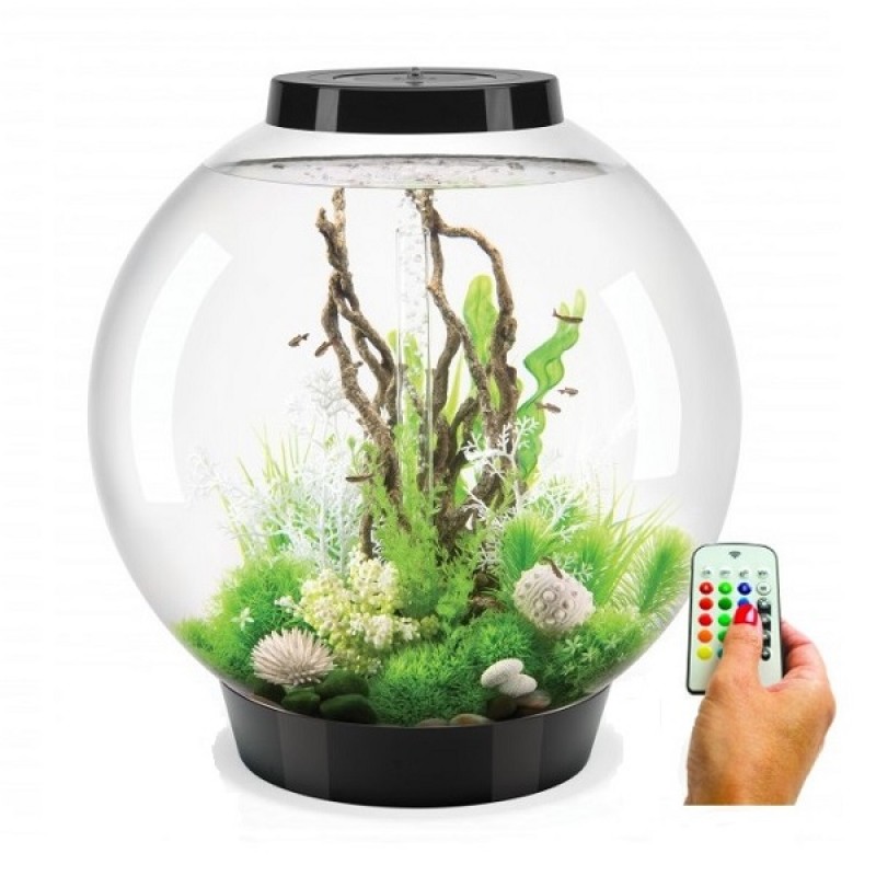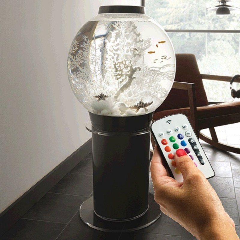 Круглый аквариум из высокопрочного прозрачного акрила с цветной подсветкой и пультом. Полностью готов к использованию. Крышка белая.Крышка черная. Все, что необходимо для установки аквариума, входит в комплект: