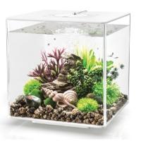 Аквариум из высокопрочного прозрачного акрила, современной формы, с белой подсветкой LED. Полностью готов к использованию. Крышка белая. Все, что необходимо для установки аквариума, входит в комплект: