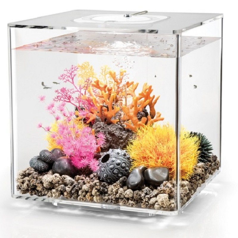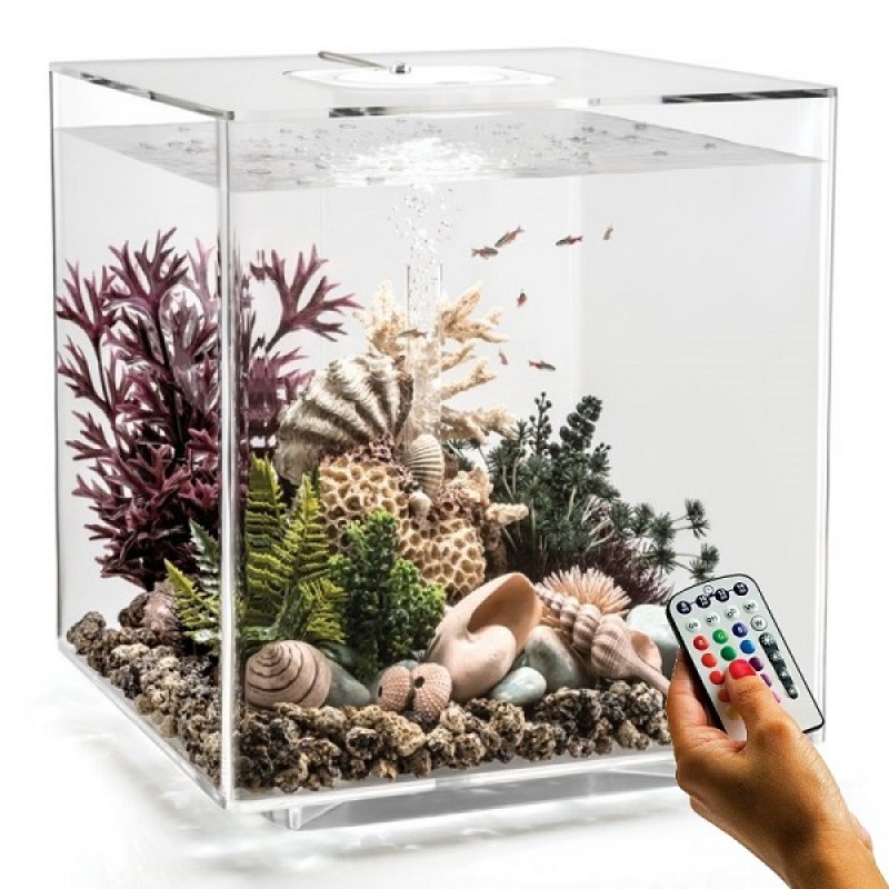 Аквариум из высокопрочного прозрачного акрила, в форме куба, с цветной подсветкой и пультом. Всесторонний обзор. Полностью готов к использованию. . Все, что необходимо для установки аквариума, входит в комплект: