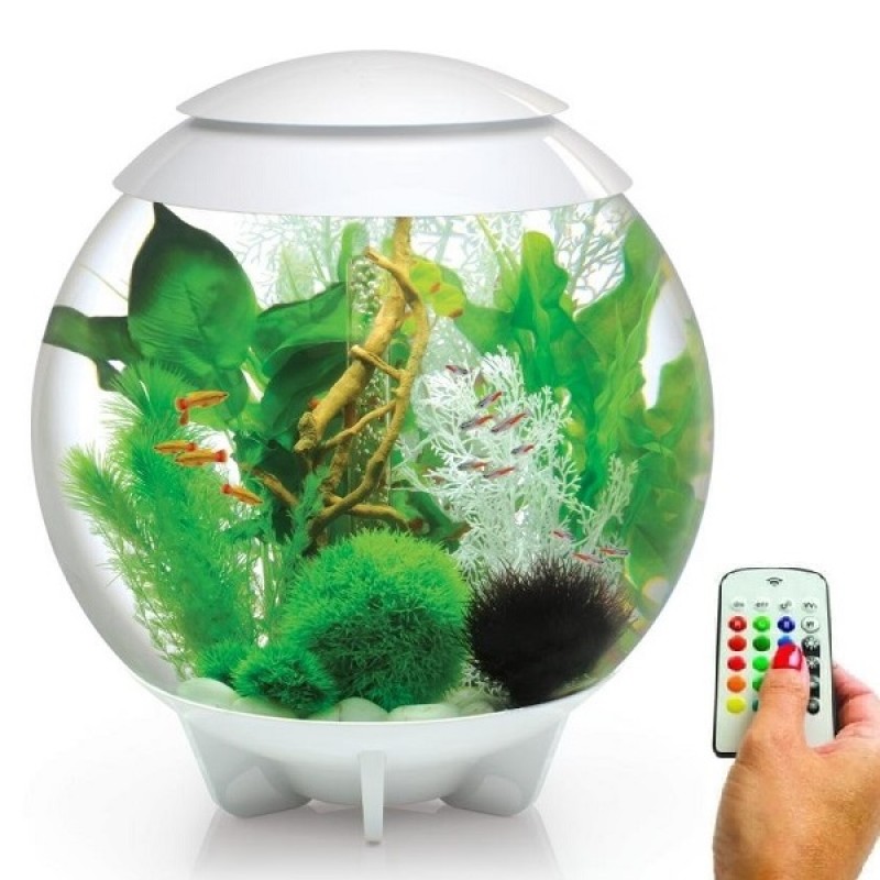 Круглый аквариум из высокопрочного прозрачного акрила с цветной подсветкой и пультом. Полностью готов к использованию. Крышка белая. Все, что необходимо для установки аквариума, входит в комплект: