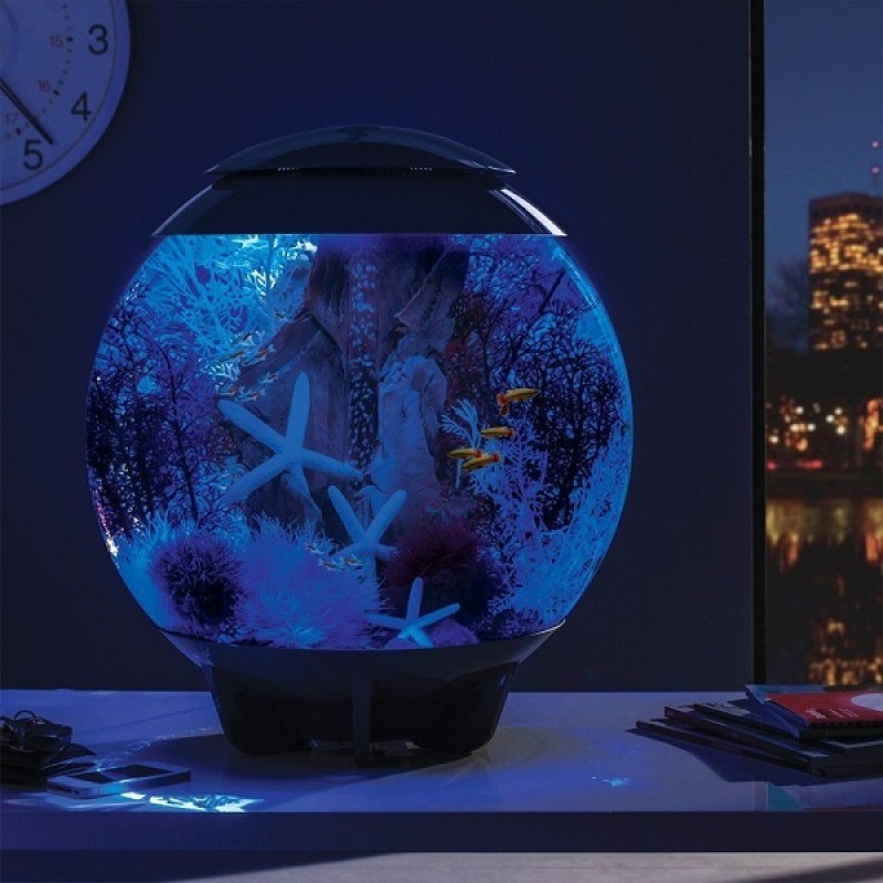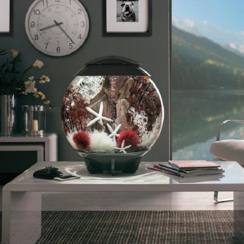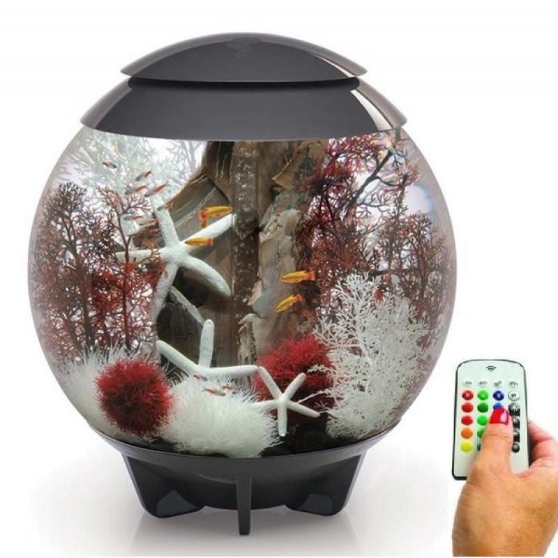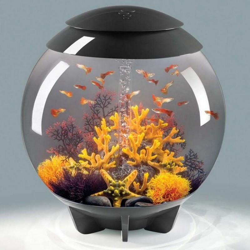 Круглый аквариум из высокопрочного прозрачного акрила с цветной подсветкой и пультом. Полностью готов к использованию. Крышка серая. Все, что необходимо для установки аквариума, входит в комплект: