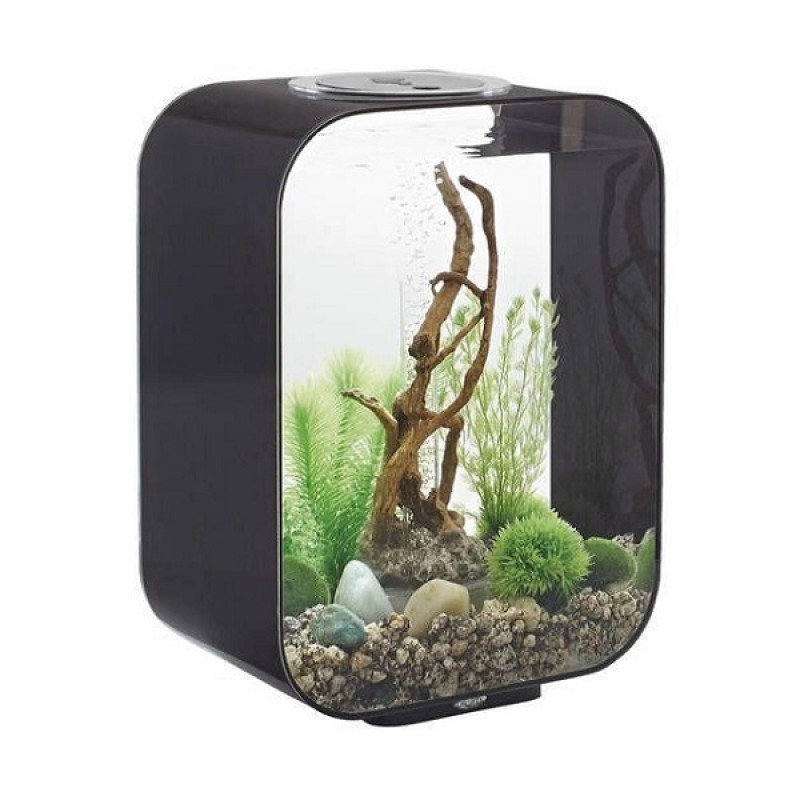 Аквариум из высокопрочного прозрачного акрила, современной формы, с цветной подсветкой и пультом. Полностью готов к использованию. Крышка черная. Все, что необходимо для установки аквариума, входит в комплект: